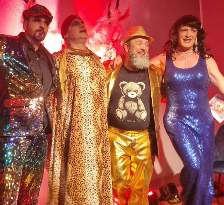 Letzen Samstagabend hat eine kleine Gruppe von Freund*innen eine Travestie Show unter dem Titel „Ausverkauf der Würde – Travestie aus dem Plattenbau“ veranstaltet. Ganz bewusst im kleinen Rahmen: **Freunde für Freunde** Mit dabei auf der Bühne: **Jens, Kai, Gregor und Ingo.**